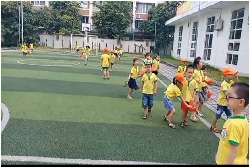 Các bé vui chơi ở sân bóng của trường tiểu học