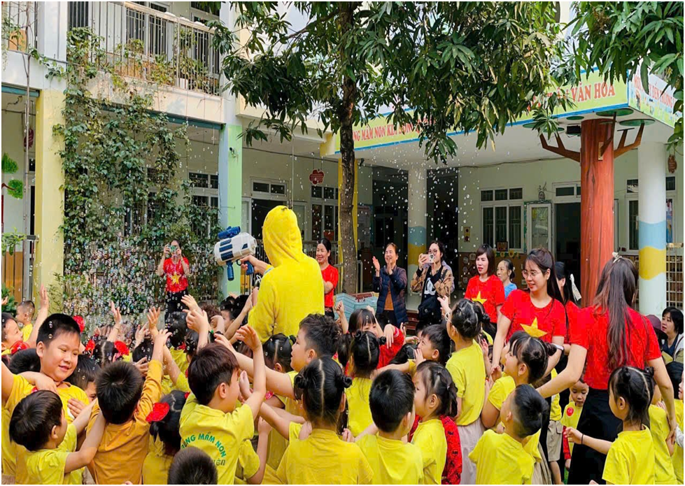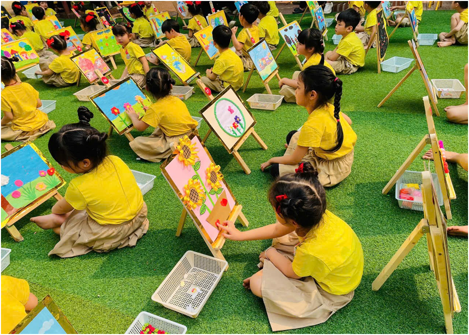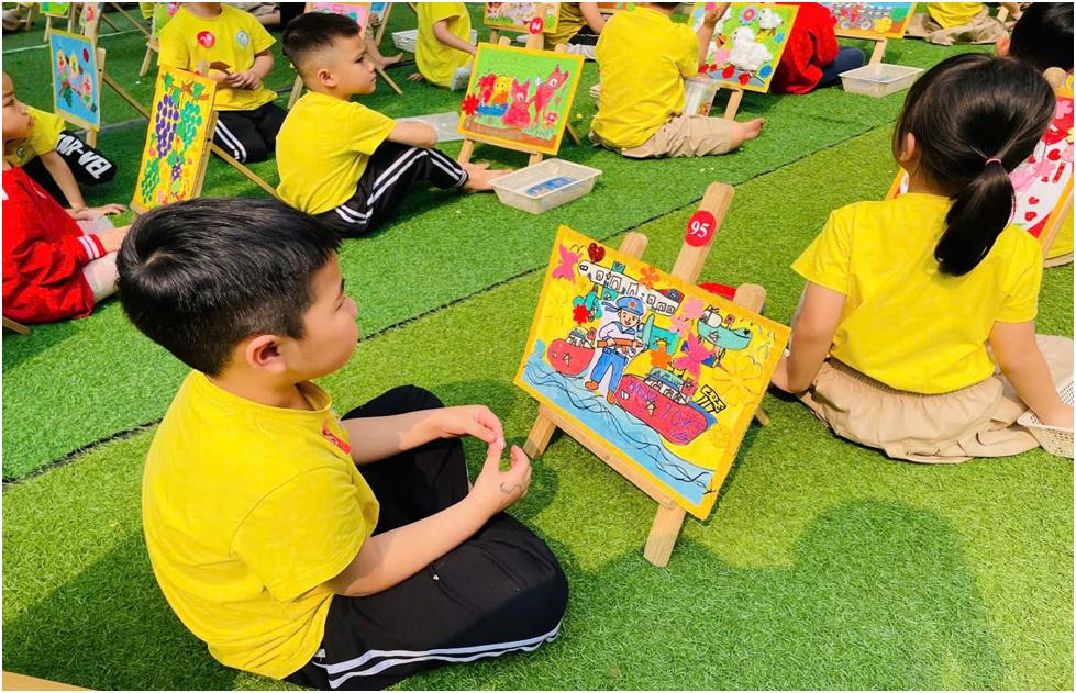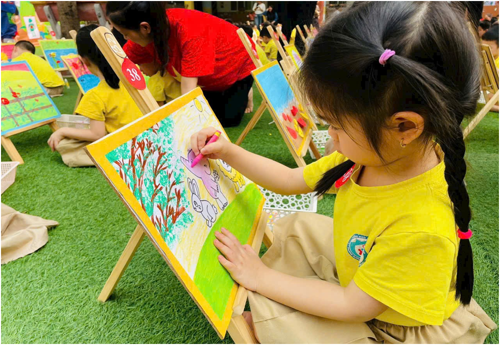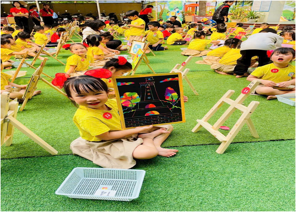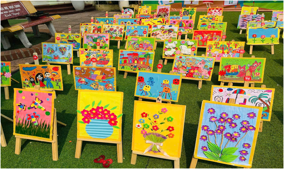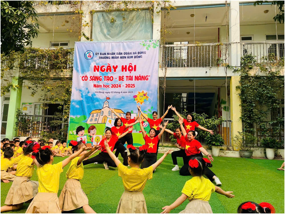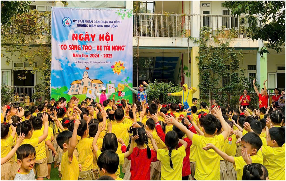 Căn cứ vào kế hoạch thực hiện nhiệm vụ năm học 2024-2025. Sáng ngày 03/04/2025 Trường MN Kim Đồng kết hợp với Hội cha mẹ học sinh và trung tâm bồi dưỡng kỹ năng Sunkids Việt Nam tổ chức Ngày hội “Cô sáng tạo, Bé tài năng” năm học 2024 - 2025. Đến với ngày hội rất vinh dự có sự góp mặt của Ban đại diện CMHS và các quý phụ huynh, đặc biệt là sự tham gia của 100% trẻ của 9 nhóm, lớp. Ngày hội là một hoạt động bổ ích, giúp trẻ được giao lưu học hỏi với các bạn, đồng thời là động lực để thúc đẩy hoạt động giáo dục thẩm mỹ cho trẻ. Trẻ tích cực tham gia các hoạt động tạo hình sẽ giúp trẻ tăng khả năng tư duy sáng tạo, óc quan sát tinh tế, nâng cao trí tưởng tượng, rèn luyện tính kiên nhẫn, tỉ mỉ, bồi dưỡng tâm hồn và cảm xúc cho trẻ. Qua đó, các con mạnh dạn tự tin, tích cực tham gia vào các hoạt động khác; là cơ hội để các con được giao lưu, học hỏi giữa các lớp trong trường. Sau đây là một số hình ảnh trong ngày hội: