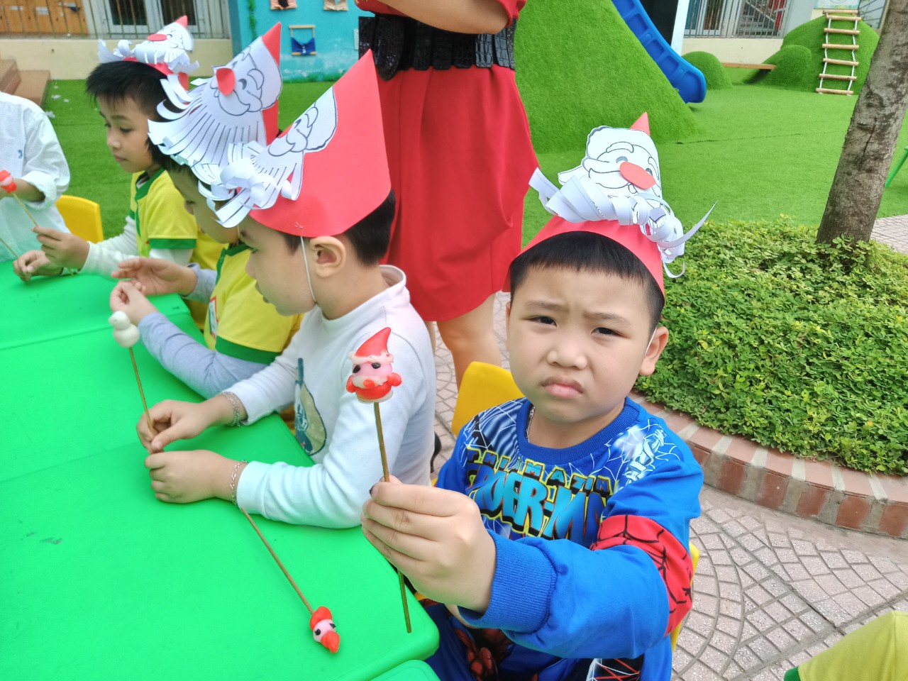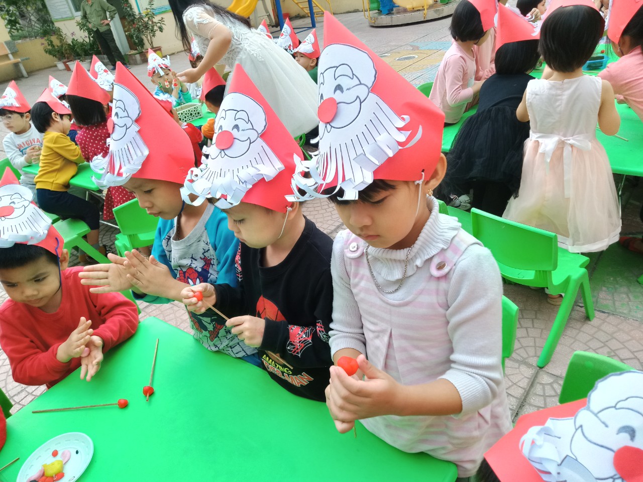 Môn học nghệ thuật sáng tạo với mục đích chơi mà học, học mà chơi, mang đến cho trẻ những phút giây thăng hoa của trí tưởng tượng và sáng tạo với các hoạt động mang tính nghệ thuật từ vẽ, nặn, cắt, xé, dán đến xâu, đính với những nguyên vật liệu phong phú, từ thân thuộc đến mới lạ. Mỗi giờ học là một chủ đề khác nhau, nguyên liệu và cách thực hiện khác nhau. Với chủ đề Giáng Sinh năm nay các Bé sẽ được học nặn tò he tạo hình các nhân vật như ông già Noel, Người tuyết và cây thông Noel.