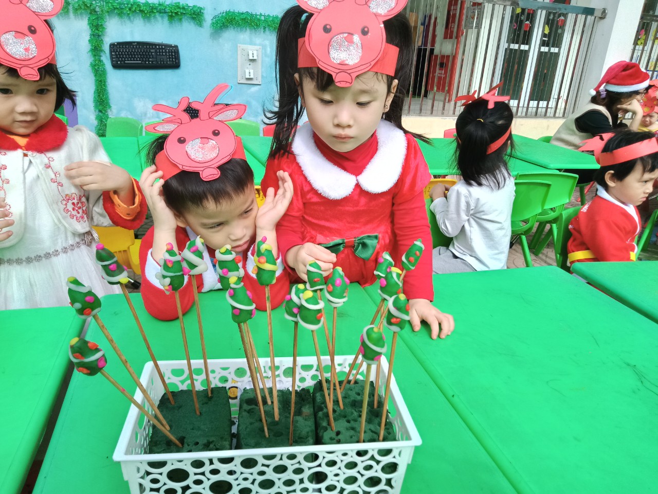 Nghệ nhân hướng dẫn các Bé lớp C2 nặn hình cây thông Noel