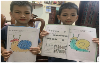 Một số hình ảnh của các bé ở nhà và kết quả, sản phẩm học tập: