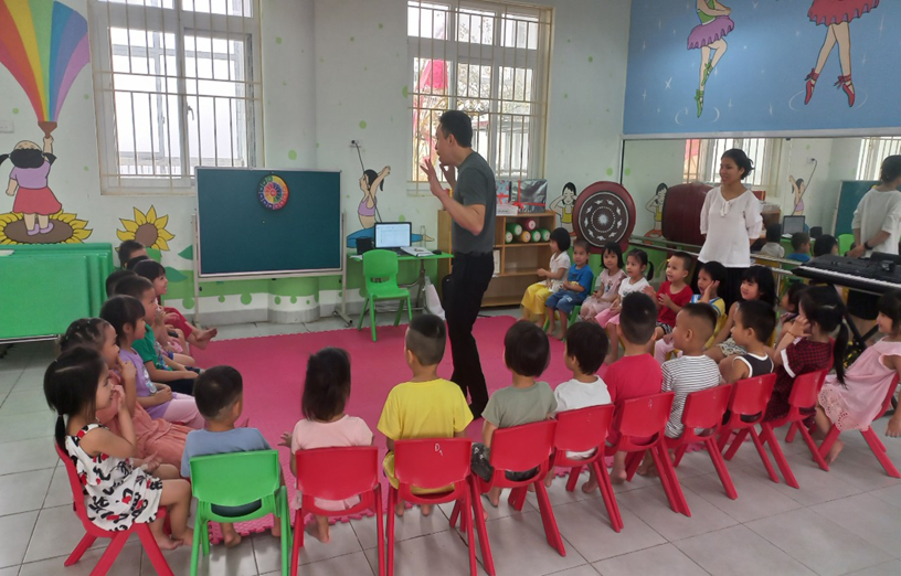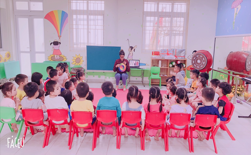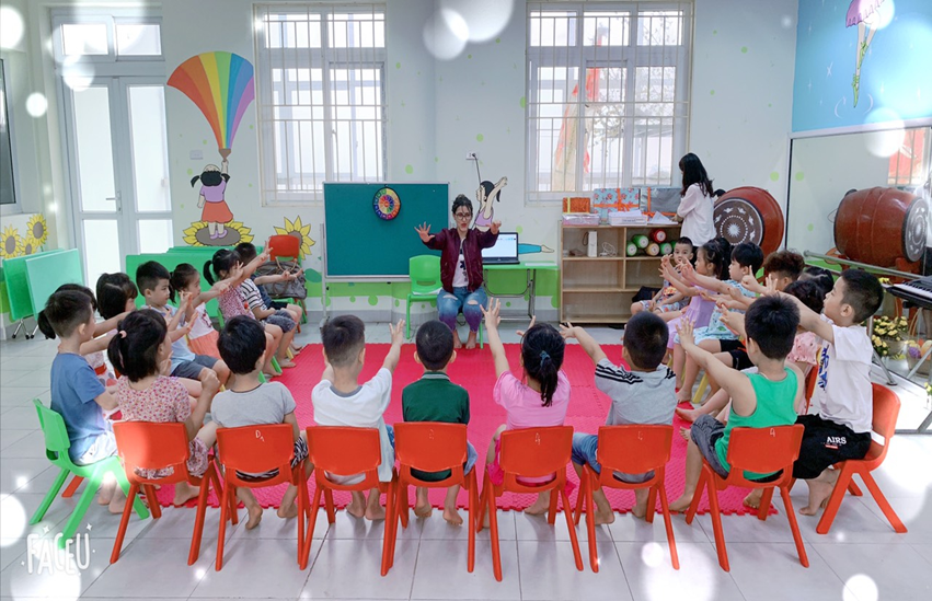 Kính gửi các bậc phụ huynh trường MN Kim Đồng! Sau một thời gian dài trẻ không được đến trường do dịch bệnh Covid-19; nhằm cho trẻ hứng thú đến trường, tạo cho trẻ tham gia nhiều các hoạt động hơn; trẻ tích cực, mạnh dạn hơn nên nhà trường đã phối hợp với các trung tâm năng khiếu mở các lớp học ngoại khoá cho trẻ được tham gia hoạt động với nguyện vọng, đăng ký tự nguyện của các bậc phụ huynh; trong đó có chương trình cho trẻ làm quen với Tiếng Anh. Đặc biệt, năm học này nhà trường và Trung tâm tiếng anh Dream Sky đưa thêm chương trình hệ nâng cao vào cho trẻ được làm quen Tiếng Anh và được sự ủng hộ của các bậc phụ huynh. Chương trình hệ nâng cao có giáo viên người nước ngoài trực tiếp dạy và hoạt động cùng trẻ. Phương pháp này mang đến chuyển biến tốt không chỉ trong kỹ năng nói tiếng Anh. Mà còn cải thiện hiệu quả các kỹ năng nghe, nói, đọc, viết cho trẻ. Trong giờ học năng khiếu giáo viên nước ngoài rất nhiệt tình, năng động, thân thiện với trẻ. Ngay từ buổi đầu tiên lớp học của trẻ với giáo viên nước ngoài, các bé đã rất vui vẻ, hứng thú tham gia. Một số hình ảnh của lớp học ngoại khoá Tiếng Anh hệ nâng cao với giáo viên nước ngoài: