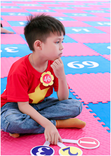 Tham gia sân chơi các con không ngần ngại chứng tỏ khả năng xuất sắc của mình, các con luôn đưa ra câu trả lời rất nhanh chóng và chính xác.Với niềm vui hân hoan, phấn khởi, các con vượt qua các câu hỏi đầy kịch tính,căng thẳng, hồi hộp.