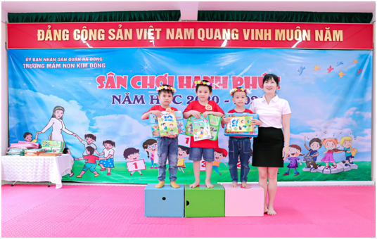 Trải qua các câu hỏi gây cấn, hóc búa chương trình: "Sân chơi hạnh phúc" của trường mầm non Kim Đồng đã tìm ra các gương mặt xuất sắc nhất đó là bé Nguyễn Duy Đức Trung (Lớp B1) và các bé Nguyễn Khánh Duy, Cao Duy Hưng, Trần Ngọc Khang (Lớp A2) cùng các bé đã đạt giải nhì, ba, khuyến khích của các nhóm lớp.
