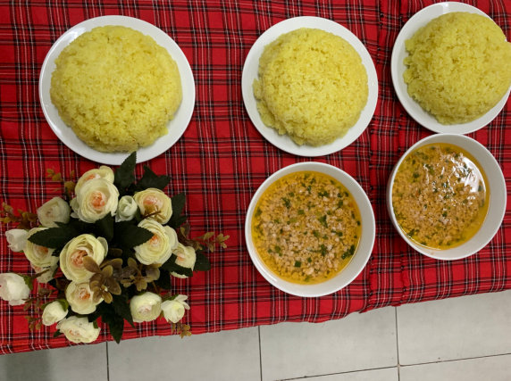 Hình ảnh tổ chức chuyên đề “Giờ ăn hạnh phúc” bữa ăn phụ: “Xôi xéo, thịt gà rim”