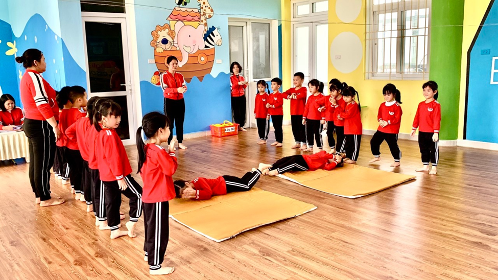 Một số hình ảnh buổi chuyên đề kiến tập hoạt động giáo dục kiến thức, kỹ năng “Phòng cháy, chữa cháy” lồng ghép trong hoạt động phát triển vận động cho trẻ: