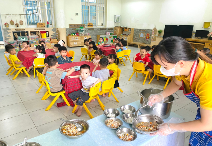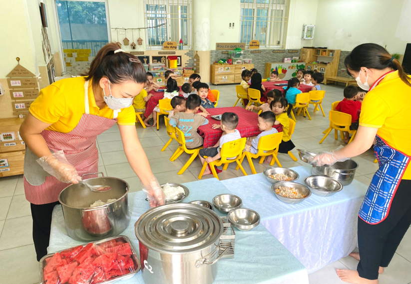 Hiện nay, cùng với việc nâng cao chất lượng chăm sóc giáo dục trẻ, vấn đề đảm bảo vệ sinh an toàn thực phẩm trong trường mầm non được các cấp, ban ngành chú trọng và chỉ đạo sát sao.Trường MN Kim Đồng đạt 100% trẻ ăn bán trú tại trường. Công tác đảm bảo vệ sinh ATTP cũng luôn được nhà trường đặt lên hàng đầu.