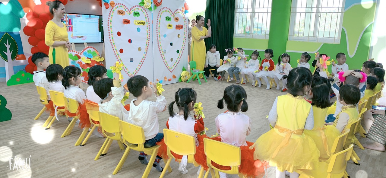 Mỗi năm khi đến tháng ba ai trong chúng ta cũng đều nhớ đến ngày Quốc tế phụ nữ 8/3, ngày mà cả thế giới tôn vinh vẻ đẹp và giá trị của người phụ nữ. Đây cũng là ngày mà những đứa trẻ dành tặng những lời chúc, bó hoa, món quà ý nghĩa cho bà, mẹ, chị của mình. Hòa chung với không khí đó sáng ngày 3/3/2023 Trường Mầm non Kim Đồng đã tổ chức chuyên đề “ Chăm sóc nuôi dưỡng và giáo dục trẻ” với 2 lĩnh vực khám phá và thẩm mỹ, gắn liền với sự kiện chào mừng 8/3 với sự tham gia của toàn thể giáo viên và phụ huynh các nhóm lớp. Hoạt động đã tạo được cho bé niềm vui, biết nói lời yêu thương và thể hiện lòng biết ơn, hiếu thảo đối với mẹ của mình - người đã mang nặng đẻ đau vất vả khó nhọc tảo tần sớm hôm.