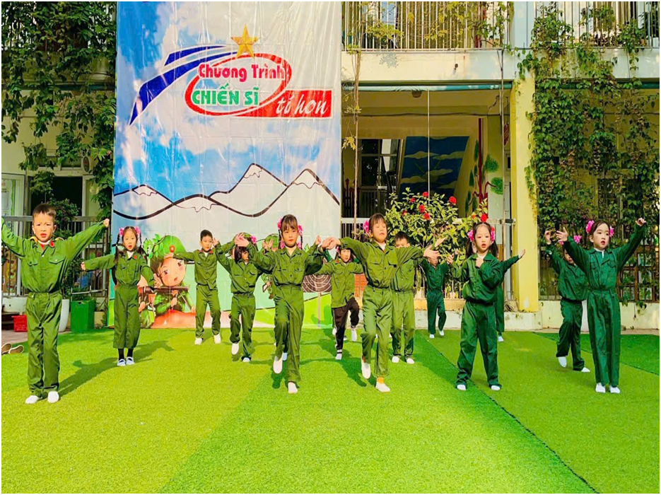 Tham gia chương trình là các tiết mục diễu binh, đồng diễn của các bé 5 tuổi: