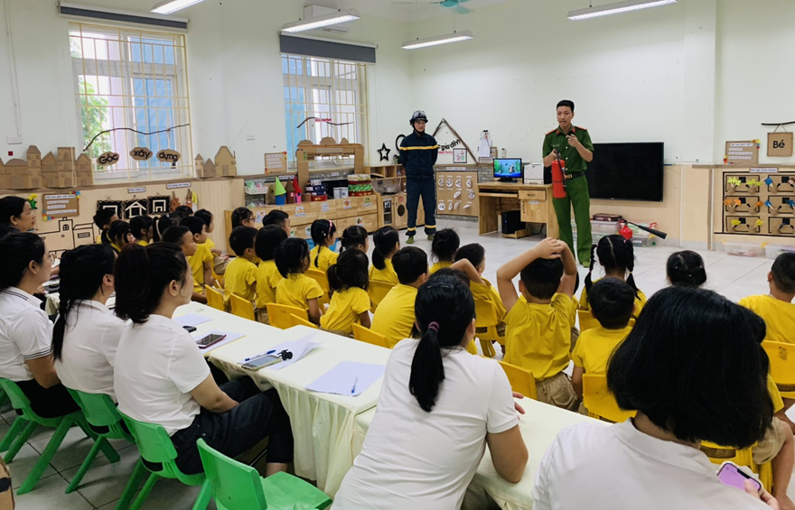 Thực hiện theo công văn số: 454/PGDĐT quận Hà Đông ngày 11/8/2023 về việcTổ chức tuyên truyền phổ biến kiến thức pháp luật, hướng dẫn kỹ năng PCCC và CNCH. Sáng ngày 28/08/2023 Trường mầm non Kim Đồng đã phối hợp với Đội cảnh sát PCCC và CHCN công an Quận Hà Đông tổ chức tuyên truyền hướng dẫn các biện pháp phòng cháy chữa cháy, chống đuối nước trong trường học cho cán bộ, giáo viên, nhân viên và học sinh trong trường.