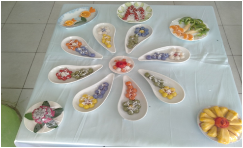 Những đôi bàn tay bé xíu đã thuần thục hơn sau một hồi nặn những viên bột bé nhỏ. Bạn nào cũng cố nặn thật tròn, thật đẹp mắt.