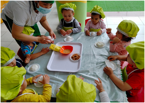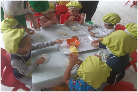 Qua hoạt động trải nghiệm nặn bánh trôi rèn cho trẻ sự khéo léo, linh hoạt của đôi bàn tay đồng thời  giúp trẻ hiểu về phong tục truyền thống của quê hương.