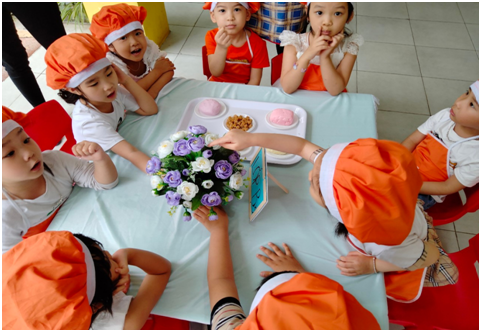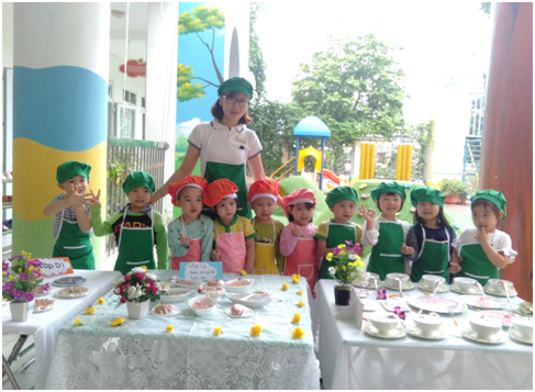 Hoạt động trải nghiệm diễn ra cho tất cả các bé các độ tuổi; từ các bé nhà trẻ đến các anh chị khối mẫu giáo lớn 5- 6 tuổi. Các cô giáo đã chuẩn bị bột để trải nghiệm với nhiều màu sắc bắt mắt mà vẫn đảm bảo an toàn thực phẩm vì nguyên liệu bột, tạo màu bột được chính tay các cô làm ra từ nguyên liệu thiên nhiên đảm bảo. Không chỉ những vậy mà còn đảm bảo cả về định lượng cho các lớp trước khi nhận nguyên liệu.