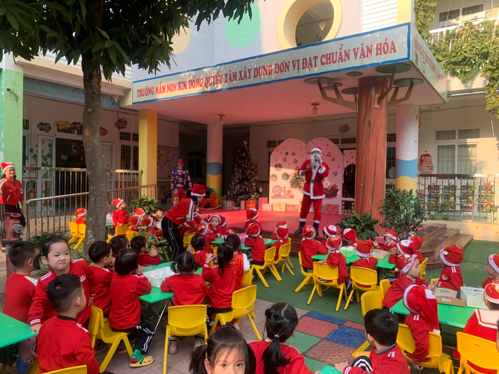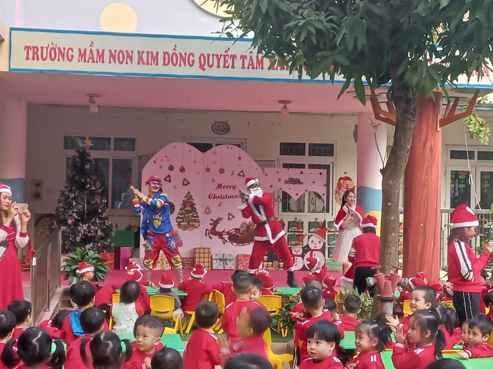 Đến tham dự liên hoan giáng sinh năm nay tại trường Mầm non Kim Đồng, chắc chắn rằng ai cũng sẽ cảm nhận được sự vui sướng hiện rõ trên nét mặt của các bạn nhỏ. Đây không chỉ là nơi để các bé vui chơi, học tập hằng ngày mà đó còn là một thế giới Giáng sinh cổ tích lung linh, ấm áp, chứa chan tình bạn, tình thầy trò cùng với những lời hứa chăm ngoan, học giỏi, lễ phép, vâng lời cô...