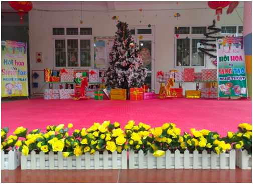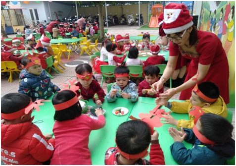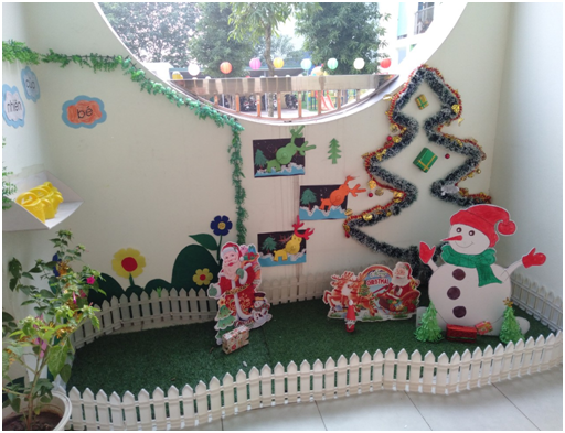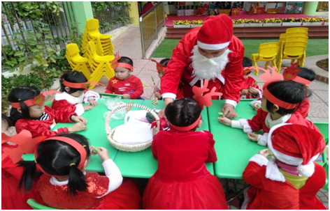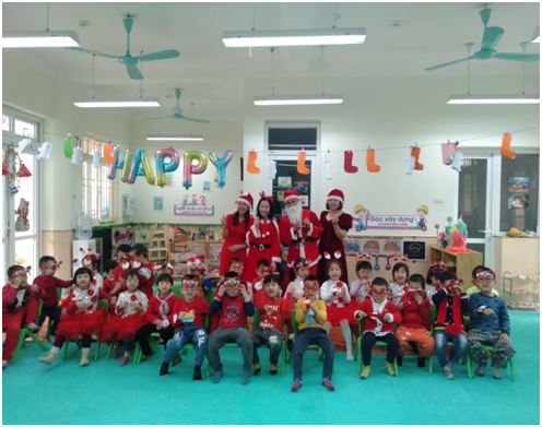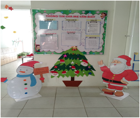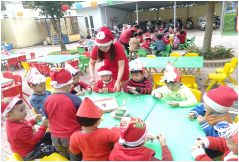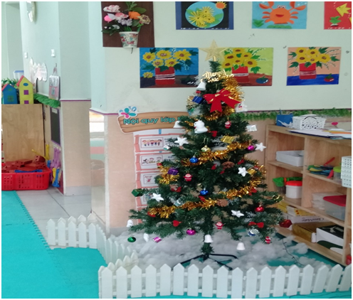 Trong những ngày qua các nhóm lớp đã trang trí môi trường chào mừng Noel, tạo không khí vui tươi, nhộn nhịp cho các bạn nhỏ với những cây thông Noel, Ông già Noel, người tuyết, những chú tuần lộc, hình ảnh trang trí giáng sinh và các hoạt động cho các bé chuẩn bị cho Lễ giáng sinh của lớp: tiết mục văn nghệ, các bé được làm mũ Noel; vẽ, cắt dán các hình ảnh ngộ nghĩnh về ngày lễ Giáng Sinh.….
