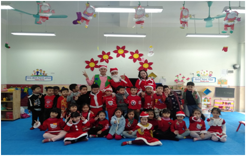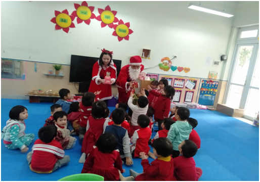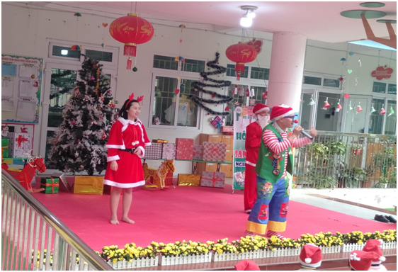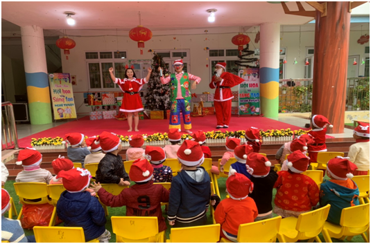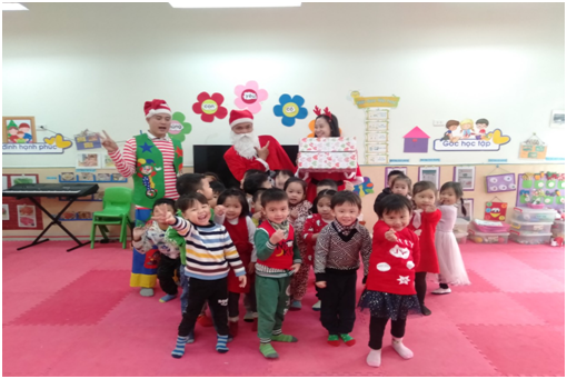 Chương trình đón Giáng Sinh diễn ra sôi nổi với nhiều hoạt động tại trường như: các bé được giao lưu với Ông già Noel, Chú Hề, Công Chúa Tuyết.