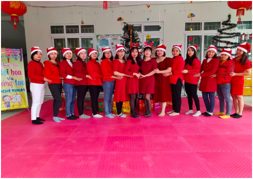 Cán bộ giáo viên nhân viên nhà trường chụp ảnh kỷ niệm lễ Giáng sinh 2020