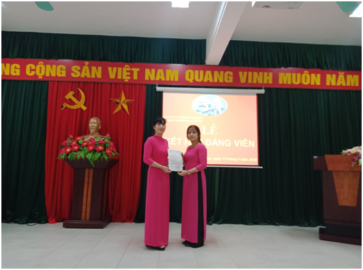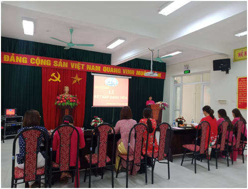 Được sự nhất trí của Đảng ủy phường Dương Nội, ngày 13 tháng 3 vừa qua Chi bộ trường Mầm non Kim Đồng đã long trọng tổ chức lễ kết nạp đảng viên mới cho quần chúng Lê Thị Thảo.
