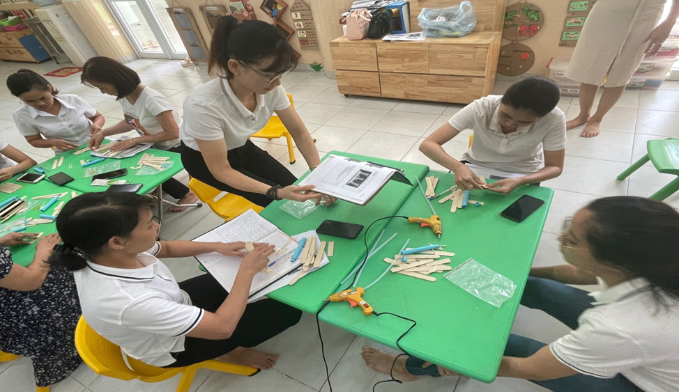 Các giáo viên tham gia buổi tập huấn đều hăng hái đưa ra ý tưởng, say mê thiết kế hoạt động giáo dục, mạnh dạn chia sẻ ý tưởng, băn khoăn của mình với thày Cương. Tất cả đều rất thích thú với các bài tập, các bài học STEAM về môn Khoa học, Công nghệ, Kĩ thuật, Toán, Nghệ thuật; hiểu hơn thế nào là giáo án 5E.