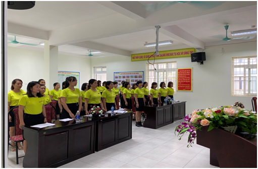 Thay mặt Đoàn chủ tịch Đồng chí Nguyễn Thị Ngân- Phó hiệu trưởng tiến hành tổ chức hội nghị chào cờ, hát quốc ca; tuyên bố lý do, giới thiệu đại biểu và thông qua chương trình hội nghị.