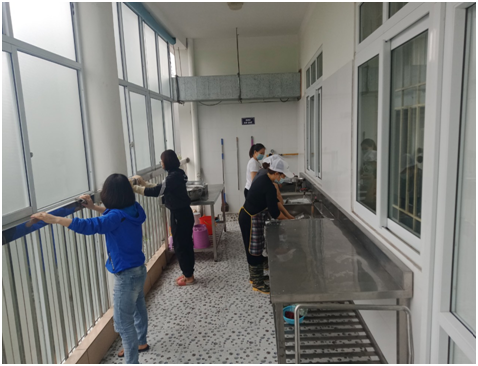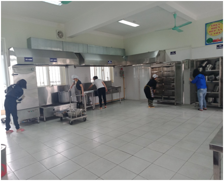 Nhân viên bếp tổng vệ sinh khu nhà bếp