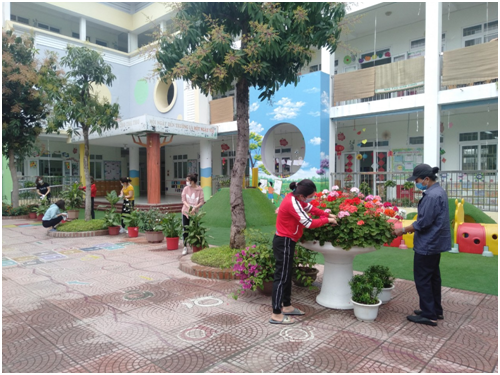 Trường Mầm non Kim Đồng trong công tác chuẩn bị đón trẻ quay trở lại trường sau khi nghỉ tránh dịch Covid 19
