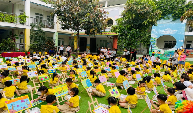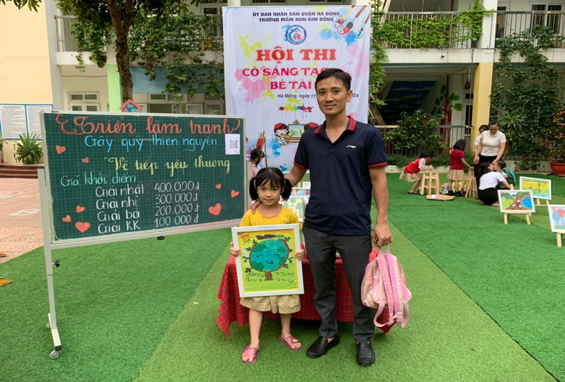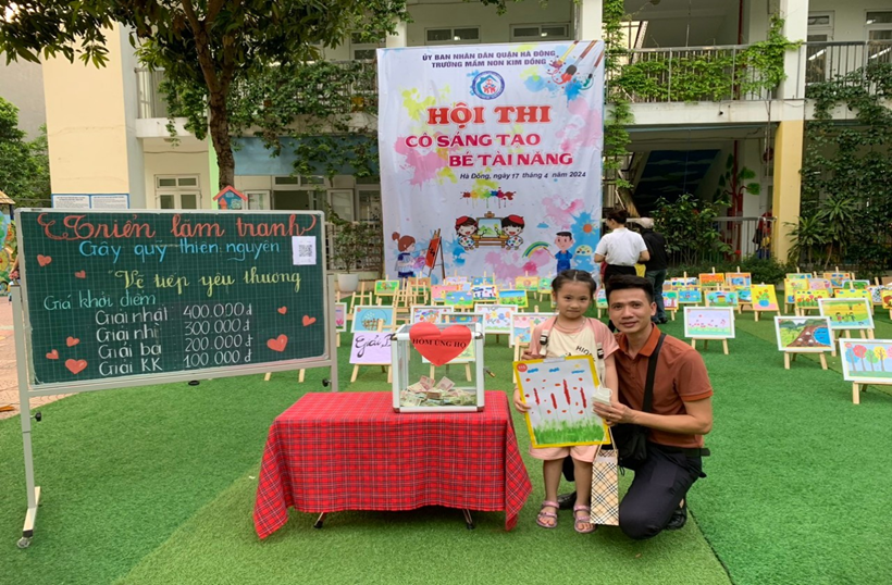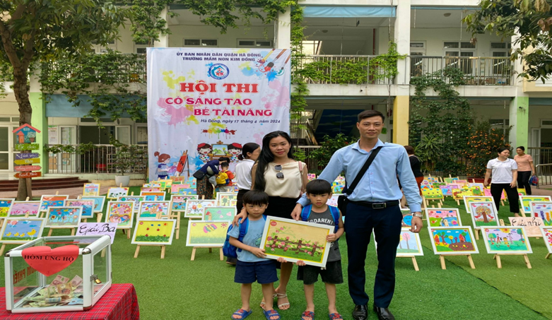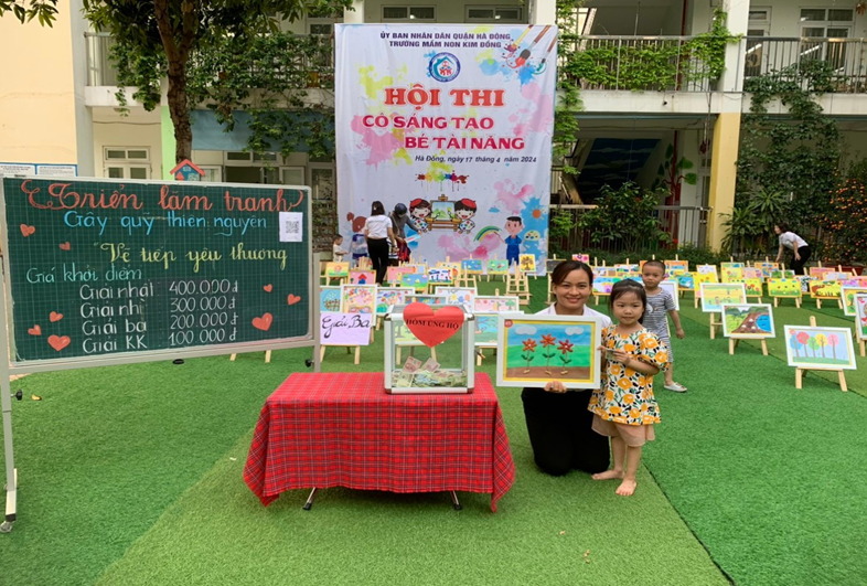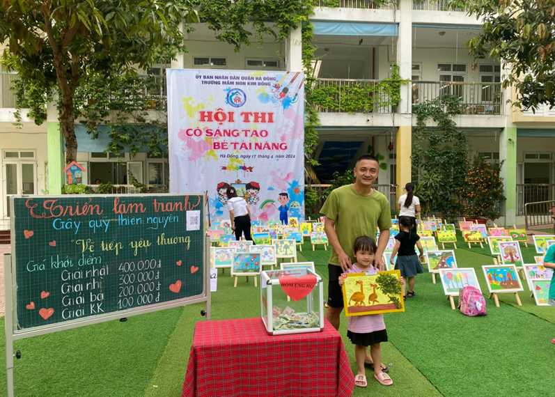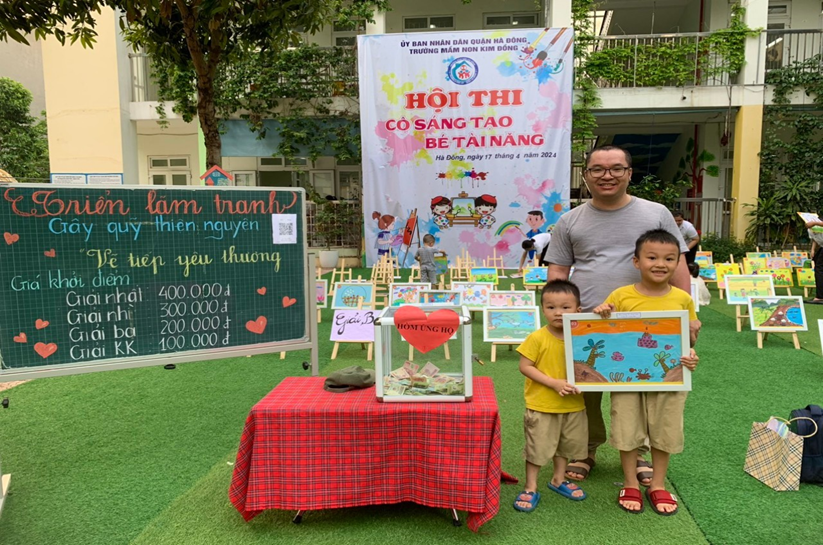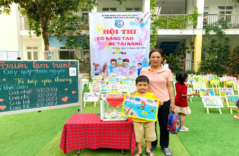 Chiều ngày 17/04/2024, trường mầm non Kim Đồng đã tổ chức hội thi " Cô sáng tạo - Bé tài năng" nhằm kích thích trí tưởng tượng sáng tạo, củng cố kỹ năng tạo hình cho trẻ. Bên cạnh đó,để những tác phẩm của trẻ không chỉ đẹp mà còn mang lại thông điệp ý nghĩa về lòng nhân ái, giúp các bé biết chia sẻ niềm vui và hạnh phúc cho những bạn nhỏ kém may mắn nhà trường đã tổ chức triển lãm tranh trong hội thi " Cô sáng tạo - Bé tài năng"  Gây quỹ ủng hộ cho các bạn nhỏ bị ung thư đang điều trị tại Khoa Nhi Bệnh viện K Tân Triều" vào chiều ngày 19/04/2024.