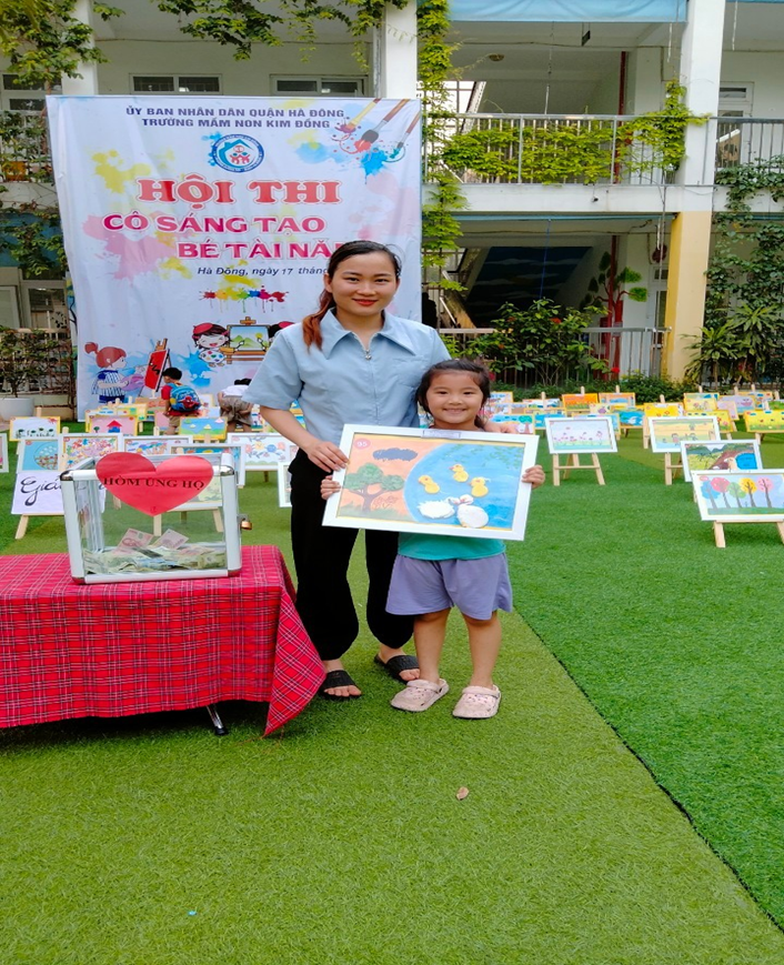 Chiều ngày 17/04/2024, trường mầm non Kim Đồng đã tổ chức hội thi " Cô sáng tạo - Bé tài năng" nhằm kích thích trí tưởng tượng sáng tạo, củng cố kỹ năng tạo hình cho trẻ. Bên cạnh đó,để những tác phẩm của trẻ không chỉ đẹp mà còn mang lại thông điệp ý nghĩa về lòng nhân ái, giúp các bé biết chia sẻ niềm vui và hạnh phúc cho những bạn nhỏ kém may mắn nhà trường đã tổ chức triển lãm tranh trong hội thi " Cô sáng tạo - Bé tài năng" Gây quỹ ủng hộ cho các bạn nhỏ bị ung thư đang điều trị tại Khoa Nhi Bệnh viện K Tân Triều" vào chiều ngày 19/04/2024.